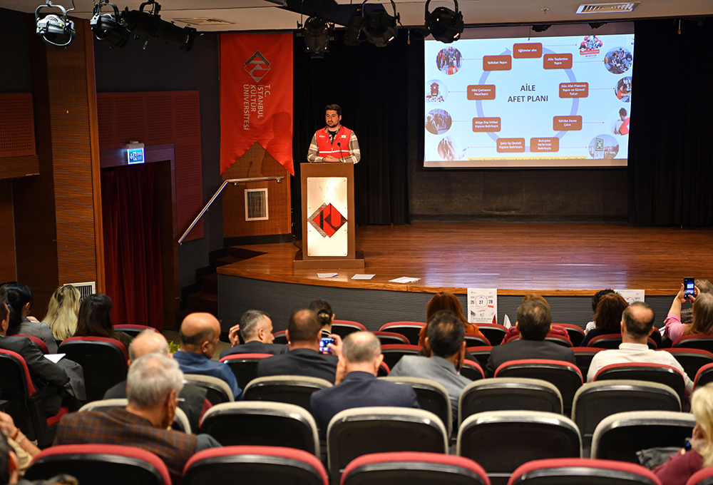 Destek Hizmetleri Daire Başkanlığı, Öğrenci Dekanlığı ve Türk Kızılayı iş birliğinde, 27 Mart 2026 Cuma günü saat 10.00'da Bakırköy yerleşkesi Ataköy binasındaki Önder Öztunalı Konferans Salonu’nda “Afetler ve Korunma Bilinci Semineri” gerçekleştirildi. Seminer kapsamında; afet öncesinde alınması gereken önlemler, afet anında doğru davranış biçimleri ve afet sonrasında yapılması gerekenler gibi konularda bilgilendirmeler yapıldı.